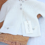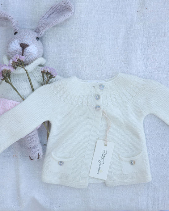 Casaco branco de 3 botões à frente.