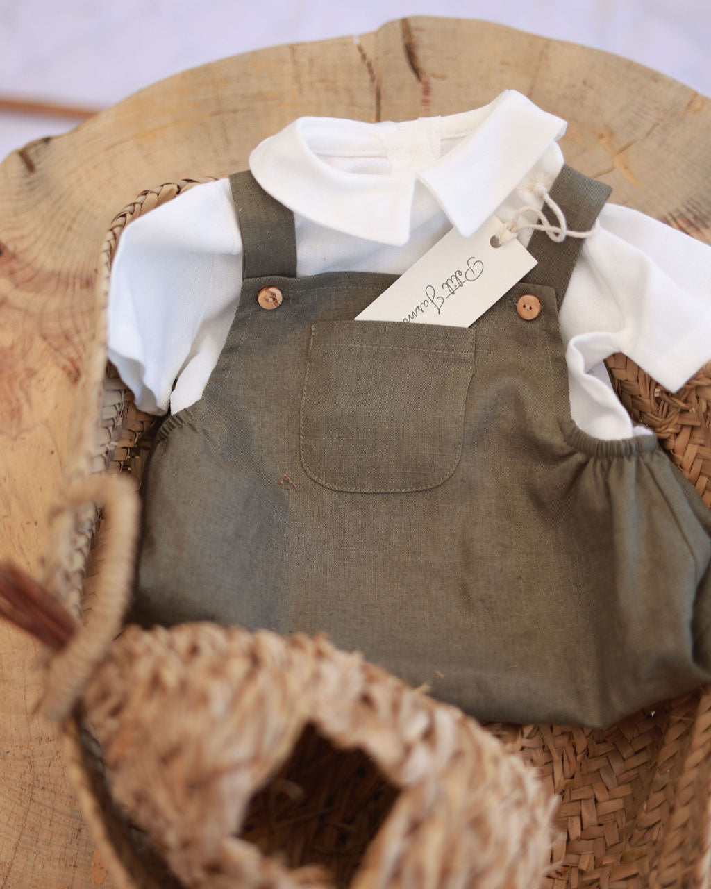 Conjunto de fofo e camisa de linho verde seco